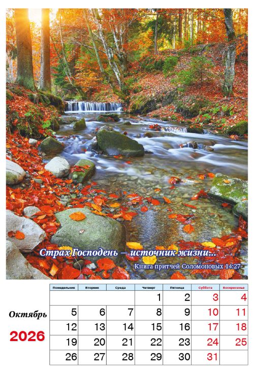 Этот календарь пользуется большой популярностью благодаря своему содержанию, удобному размеру и красочным картинам с Пейзажами природы - цитаты о любви и мудрости из Священного Писания напомнят вам о важности духовности и веры.