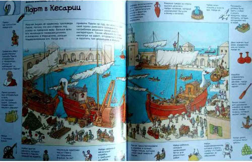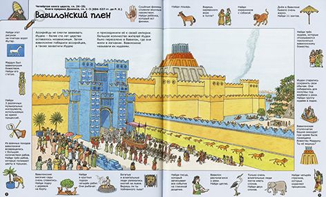 Отдельные сюжеты, которые предлагается найти на каждой иллюстрации, показывают жизнь людей в древности, листая страницу за страницей, юный читатель узнает;