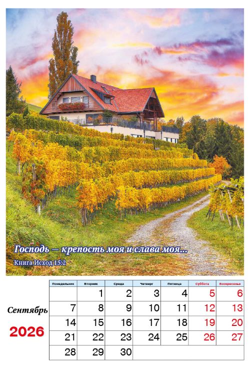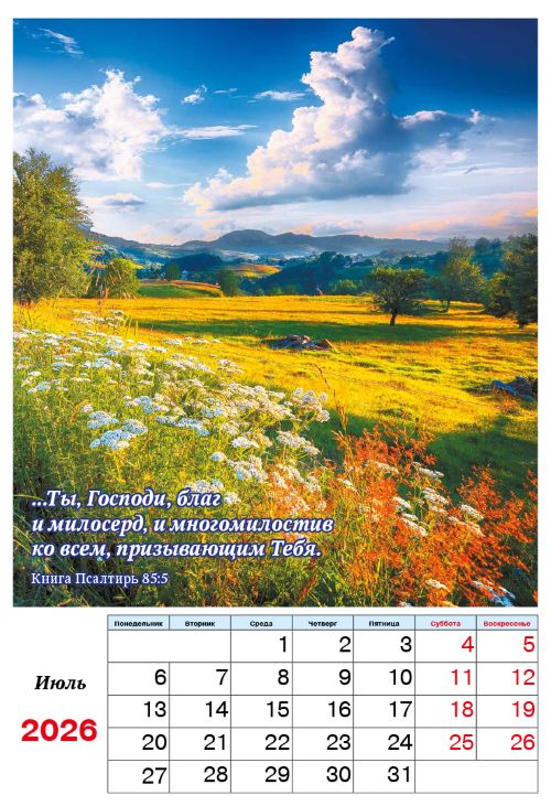 Этот календарь пользуется большой популярностью благодаря своему содержанию, удобному размеру и красочным картинам с Пейзажами природы - цитаты о любви и мудрости из Священного Писания напомнят вам о важности духовности и веры.