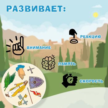 В этой увлекательной игре представлены 12 притч Иисуса. Цель игры — собрать полные наборы карточек с иллюстрациями притч. Каждый набор состоит из 4 карточек, иллюстрирующих одну притчу и отмеченных определенным цветом. Выигрывает тот, кто первым соберет 2 полных набора карточек с иллюстрациями притч.