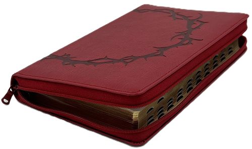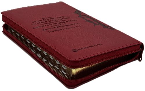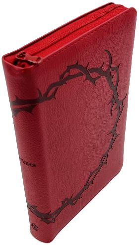 • гибкий переплет из кожи, цвет: темно-красный с тиснением тернового венца,