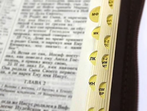 - внутренние страницы Библии с кремовым оттенком, что облегчает чтение