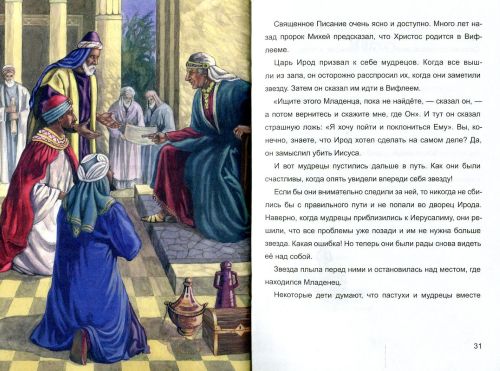 Вот и пришлось Иосифу из Галилеи, из города Назарета, идти в Вифлеем. Вместе со своей женой Марией они были в Вифлееме, когда пришло время родиться Христу. Именно об этой истории рождения Иисуса маленький читатель узнает из этой книжки.